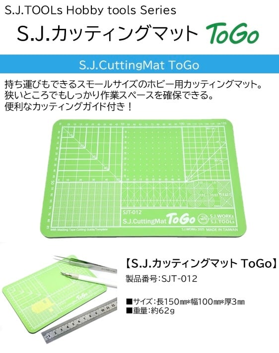 【持ち運びもできるスモールサイズのホビー用カッティングマット。狭いところでもしっかり作業スペースが確保できる。便利なカッティングガイド付き。